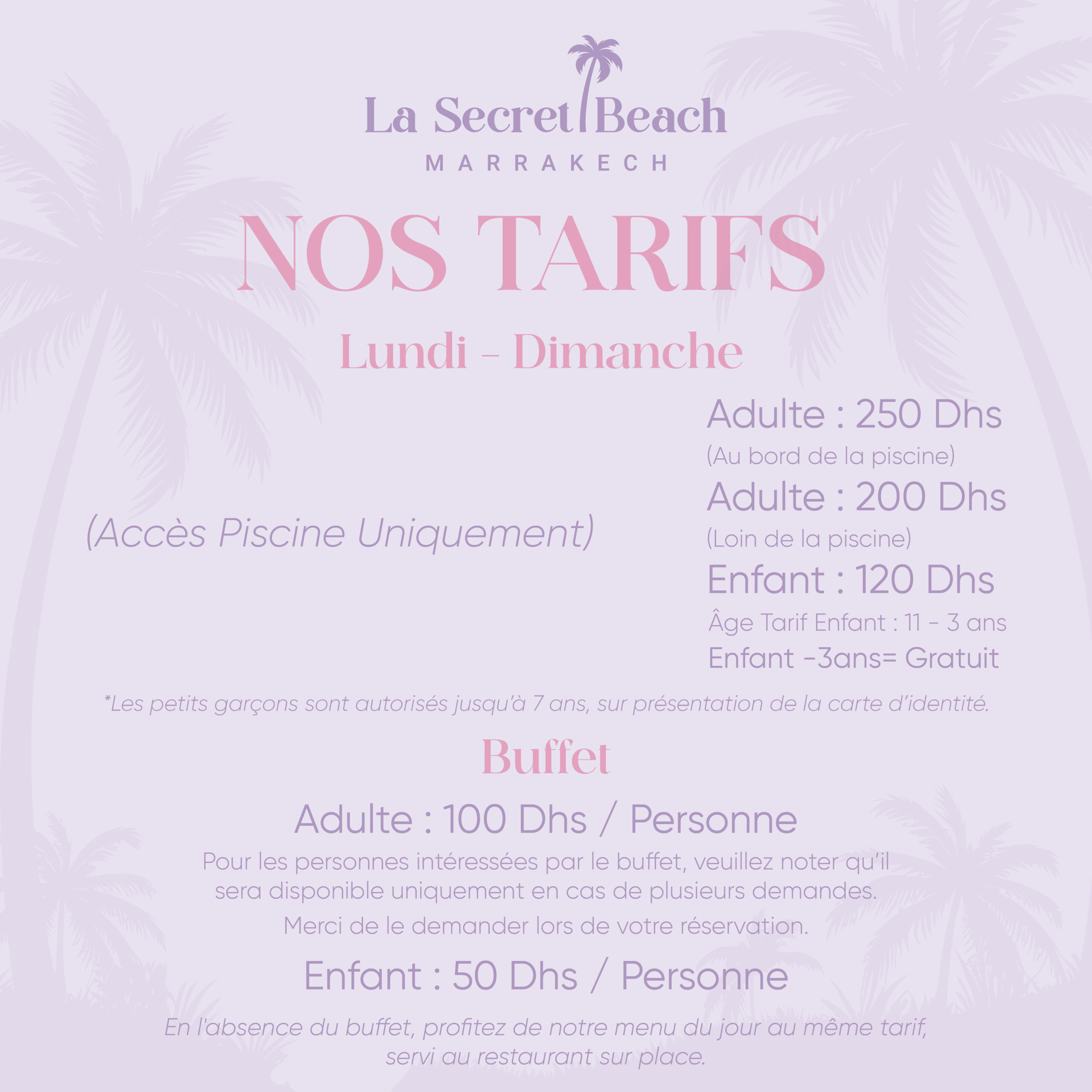 Située sur la route d'Agadir, La Secret Beach est votre destination de douceur à Marrakech ! Retrouvez la piscine 100 % femmes et combler vos envies de baignade.